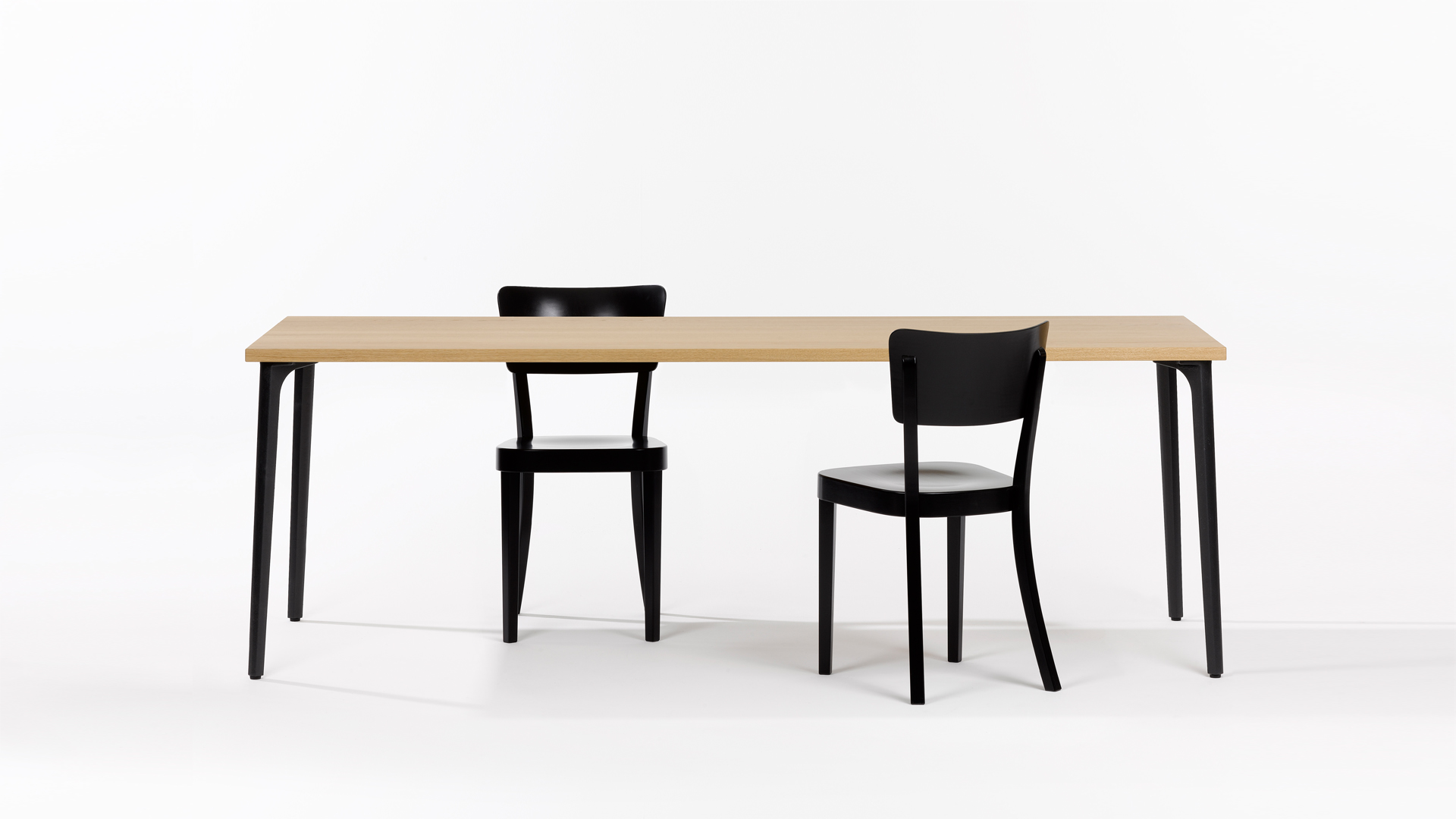 Diese Kombination von Gussbein und Vollholz-Tischplatte ist typisch für horgenglarus und knüpft an die traditionellen Werksentwürfe aus den 1920er und 30er Jahren an.