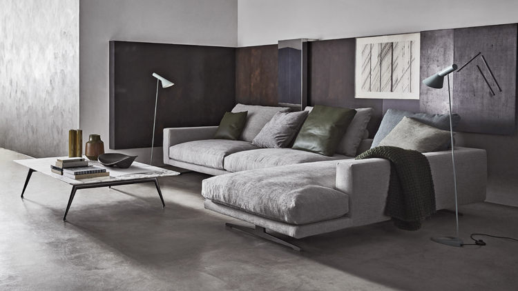 Best seller della collezione Flexform, Groundpiece ha rivoluzionato il concetto stesso di divano, introducendo nuove proporzioni e funzionalità non ancora esplorate.