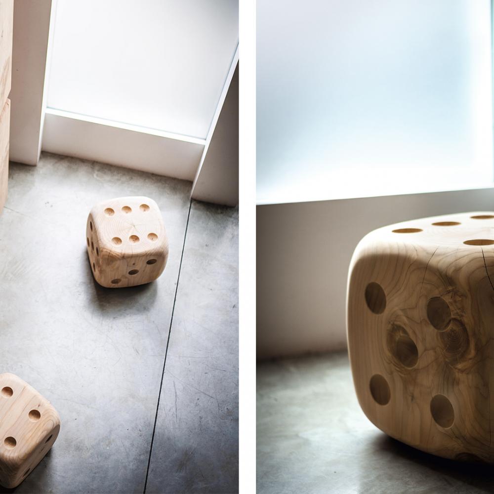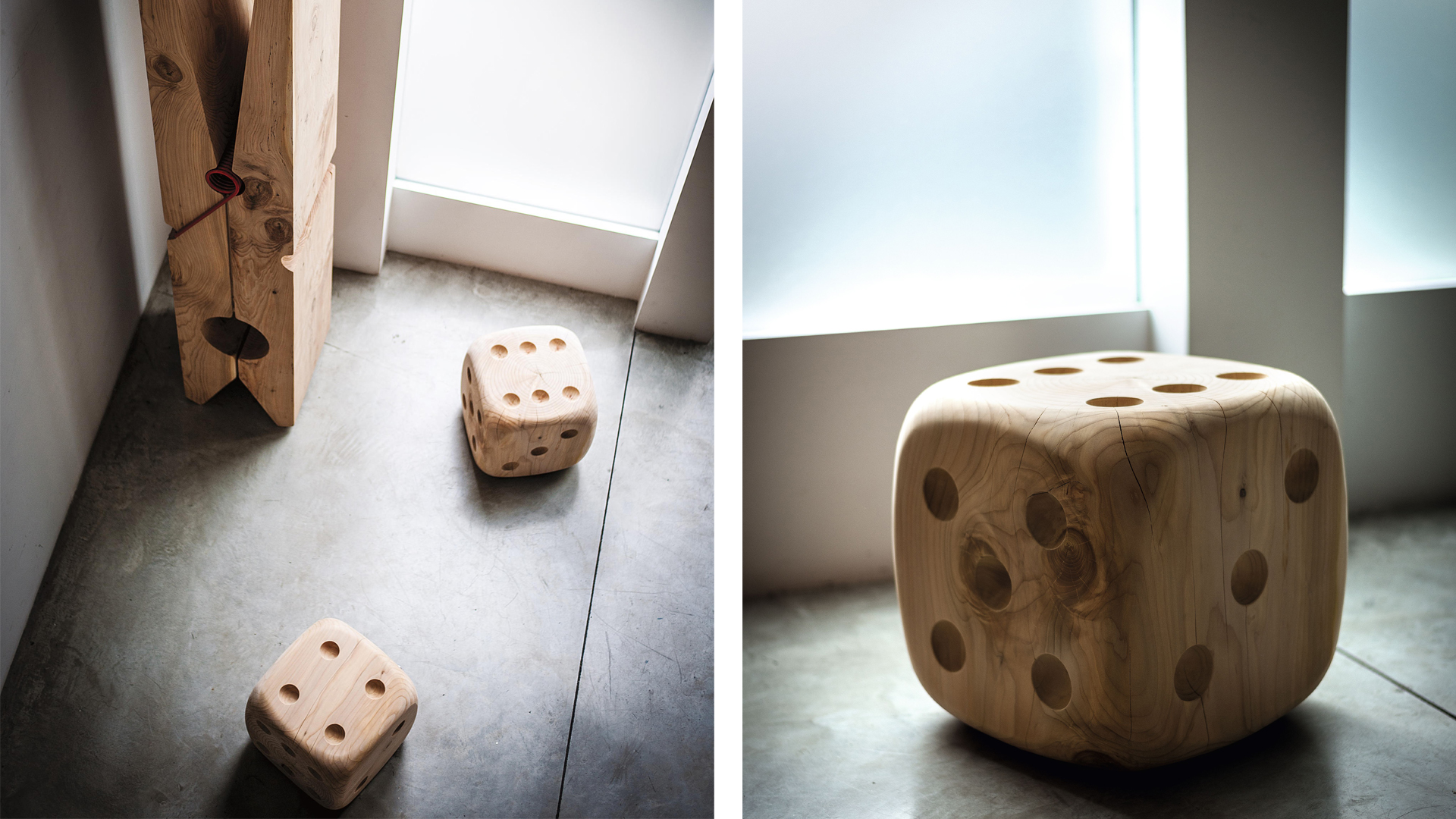 Sgabello in legno massello di cedro profumato lavorato da un blocco unico, chiaro rimando al famoso gioco da tavolo, è disponibile in due dimensioni: piccolo e grande (due elementi vengono sovrapposti l’uno sopra l’altro).