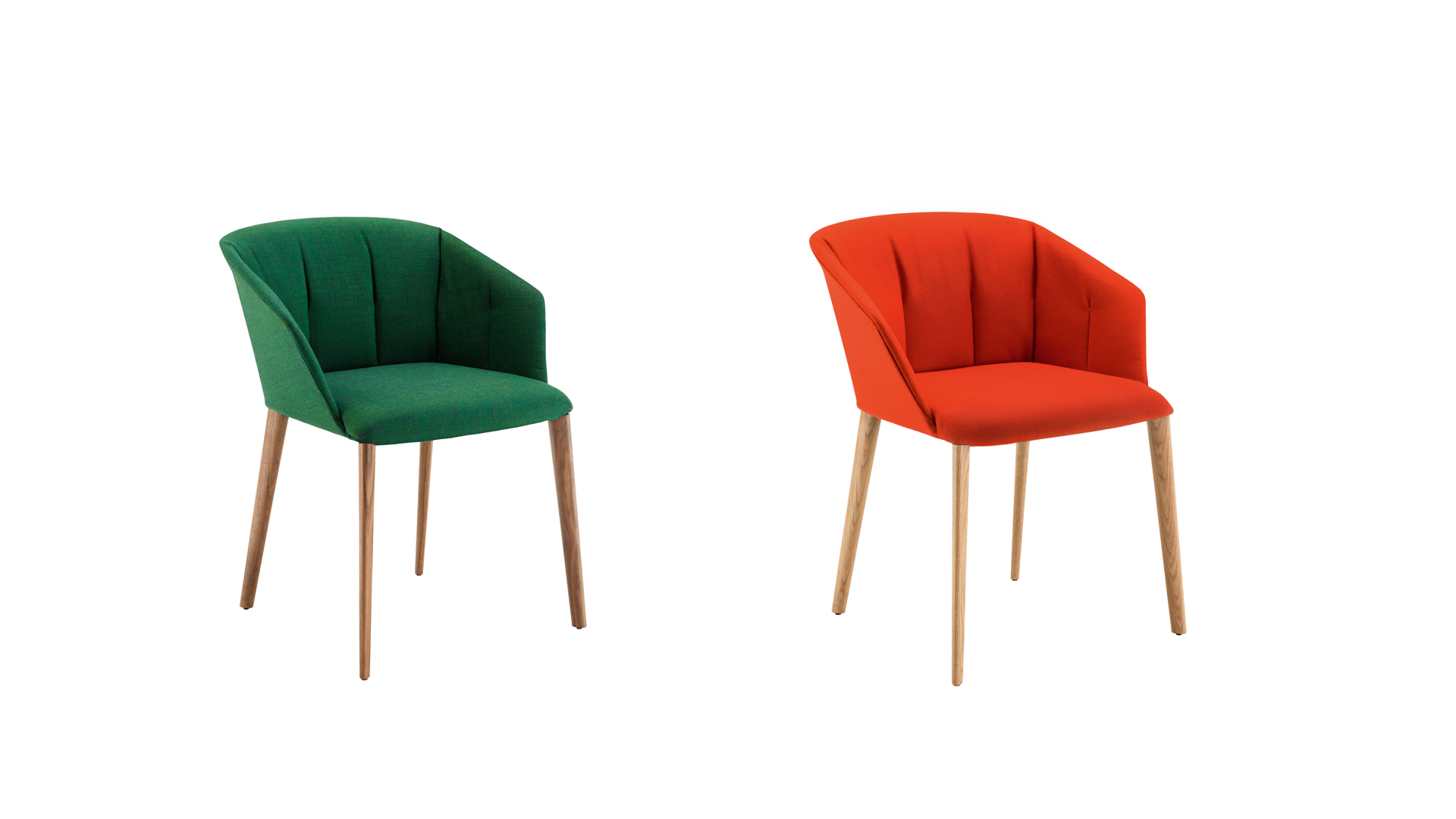 Poltroncine. Gambe in legno massello di rovere verniciato, colore naturale, o in noce canaletto colore naturale. Scocca con braccioli in polipropilene caricato fibra di vetro, colore bianco o nero. Imbottitura cuscino seduta in poliuretano schiumato autoestinguente. Rivestimento cuscino seduta sfilabile in stoffa o in pelle. Per la versione 2271/R rivestimento schienale sfoderabile in stoffa o pelle accoppiato a Dacron Du Pont.