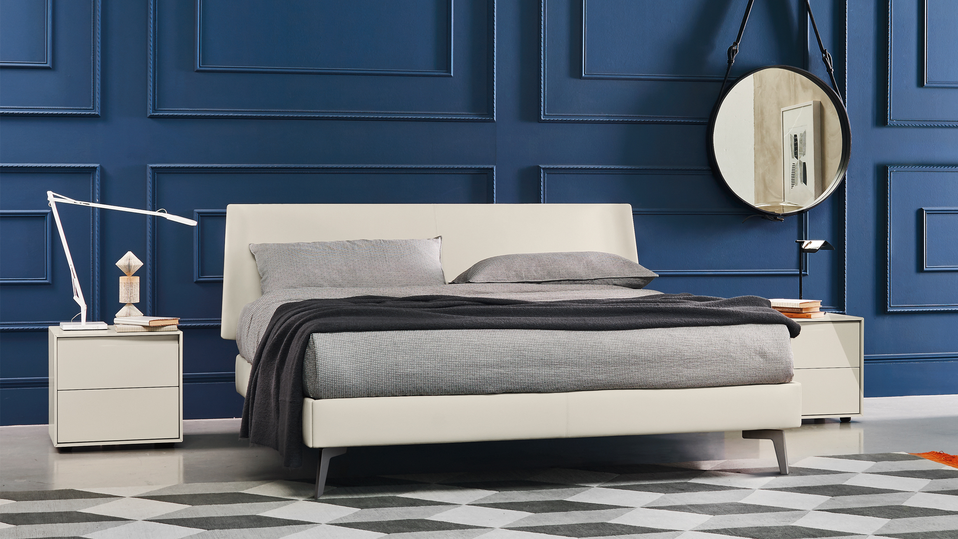 Un letto dallo stile sobrio ed essenziale, che non rinuncia però a sedurre con linee morbide e sinuose. La cura del dettaglio unita alla qualità dei materiali fanno di Aliante una delle proposte più raffinate delle collezione, con un’ispirazione che nasce dalla cultura e della memoria dell’abitare. La testiera ricurva, lievemente staccata dalla base, e le rastremature laterali ad ala, accentuano una sensazione di leggerezza unita a una sapiente maestria artigiana.